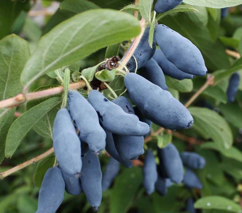 Крупномеры жимолости "Нижегородская ранняя" и "Нимфа" могут достигать до 2 метров в высоту. Сорта отличаются высокой зимостойкостью, а устойчивость к болезням средняя. Ягоду крупномеров жимолости "Нижегородская ранняя" овальной формы, синего цвета. Вкус кисло-сладкий, приятный, без горечи. Плоды крупномеров жимолости "Нимфа" длинные, овальные, с чуть бугристой кожицей. Их вкус также кисло-сладкий, с небольшой терпкостью, но в нем есть слабая горчинка, которая придает ягодам пикантности. Оба сорта высокоурожайны, с одного кустарника можно собрать до 2 кг урожая.