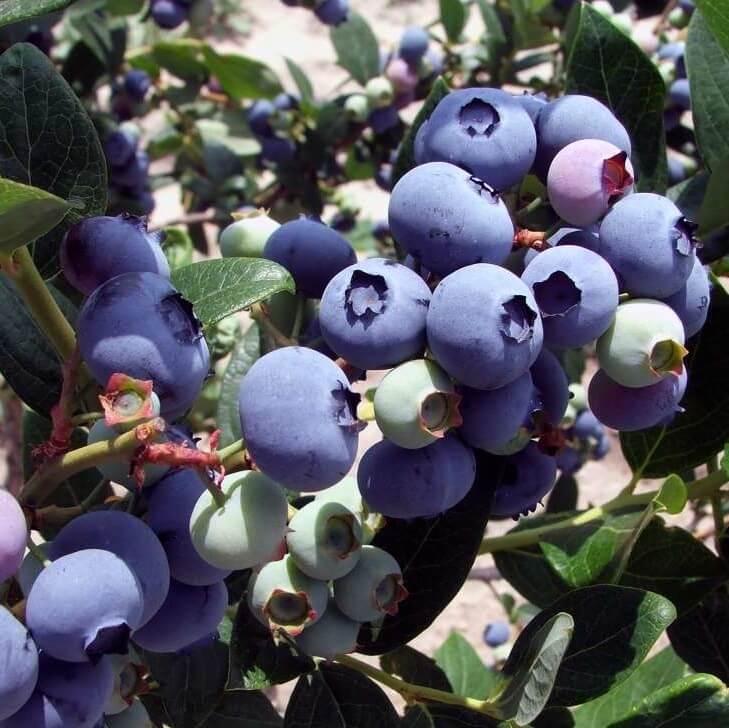 Джерси – самый старый сорт высокорослой садовой голубики со среднепоздними сроками созревания.Кусты – высокорослые и раскидистые, в высоту до 1,6-2 м. Голубика Джерси считается одним из самых лучших опылителей. С каждого куста можно получить 5-6 кг ягод.