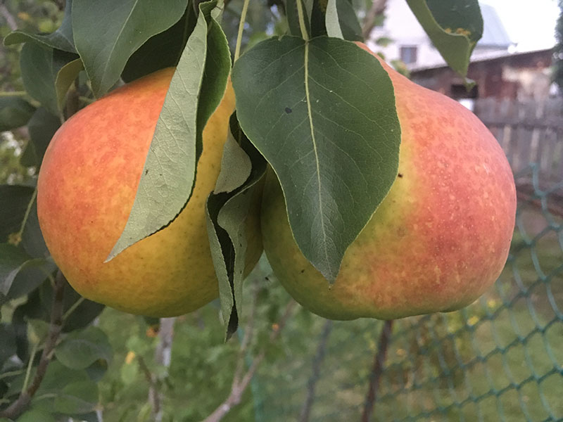 Высота груши Просто Мария может достигать трех метров. Цвет спелых груш — желтый с красно-зеленым оттенком. Масса одного плода порой достигает 200 грамм.Плоды имеют округлую, грушевидную форму. Кожура гладкая, глянцевая, тонкая.