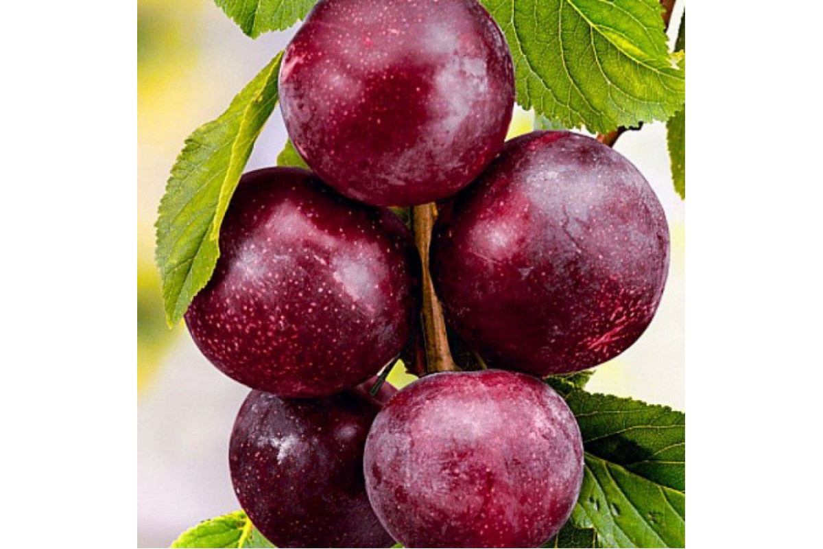 Плоды темно - фиолетовые, почти черные, несколько крупнее сливы, но форма их напоминает скорее абрикос, массой до 100 г. Мякоть розово-красная, с желтыми прожилками, персиково-абрикосового вкуса, очень сладкая и сочная. Когда плод спелый, то он напоминает абрикос, а когда нет – сливу.