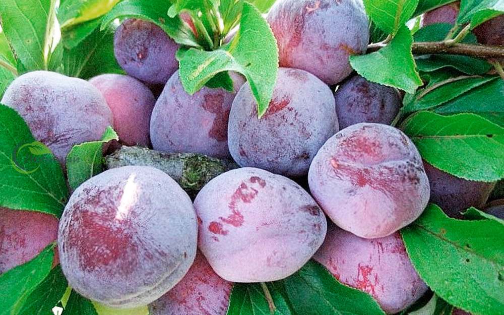 Красновато-фиолетовые плоды «Этюда» имеют довольно крупные размеры и покрыты обильным восковым налетом. Мякоть окрашена в зеленовато-желтый цвет, сочная и плотная. Вкус у плодов – сладкий, с небольшой кислинкой. Косточка имеет средние размеры и хорошо отделяется.